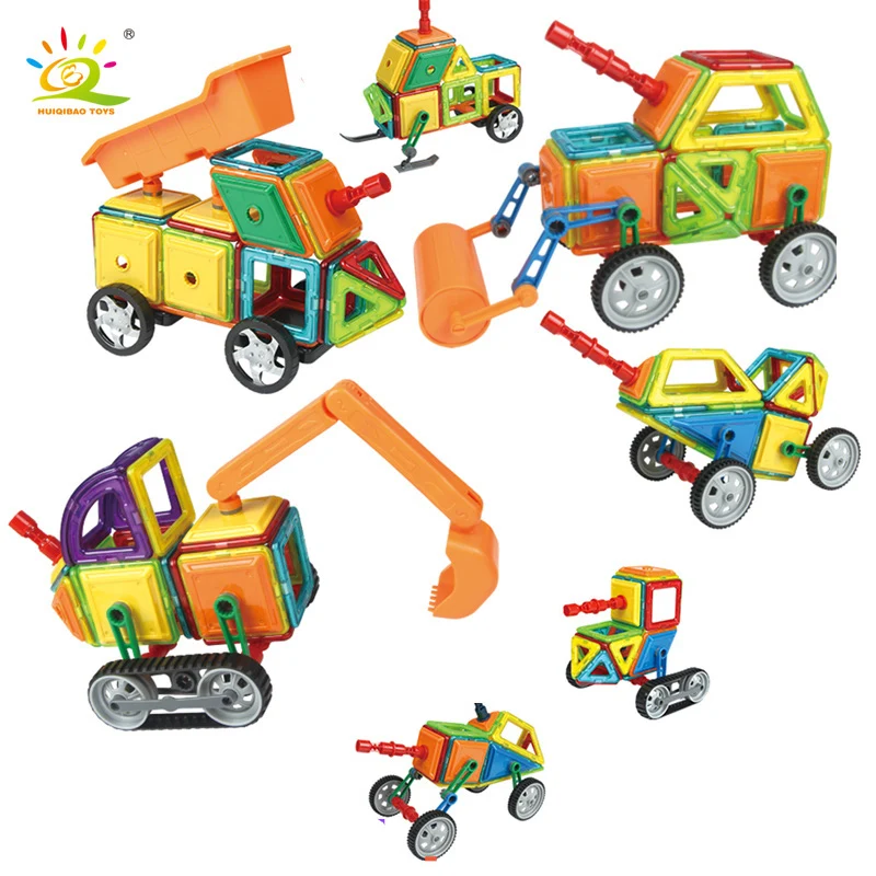 ORIGINAL 75pcs Standard Size Engineering vehicle construction Magnetic Building Blocks DIY 3D Bricks Childre